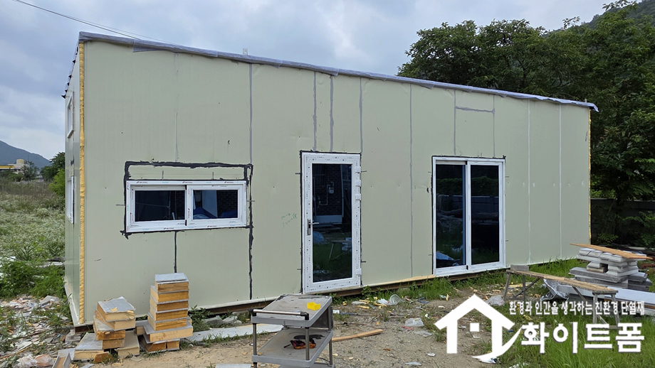 이번 현장은 샌드위치판넬과 경량철골로 신축중인 이동식주택 이였는데요, 이동식주택은 아파트나 일반주택과 비교하였을 때 가격적인 부담이 덜하면서 도시를 벗어나 한적한 곳에 본인만의 집을 가질 수 있다는 점과 귀농이나 귀촌하는 사람들이 늘어나면서 농막 등으로 사용하기 위해 관심이 많아지고 있는 추세입니다.