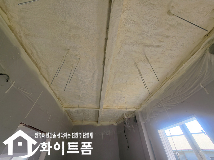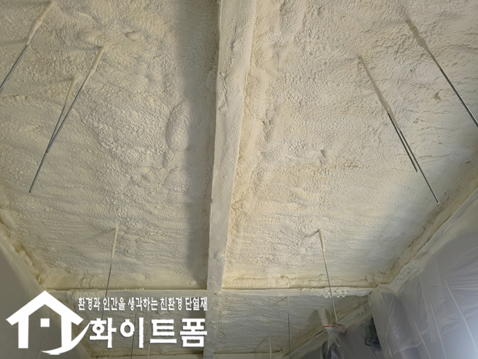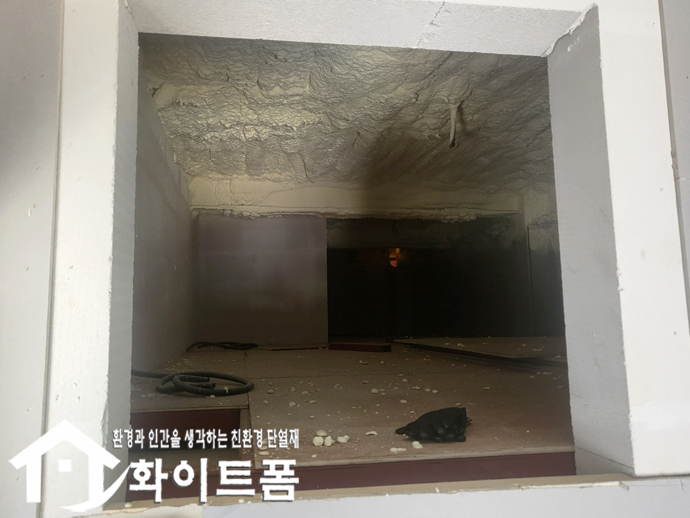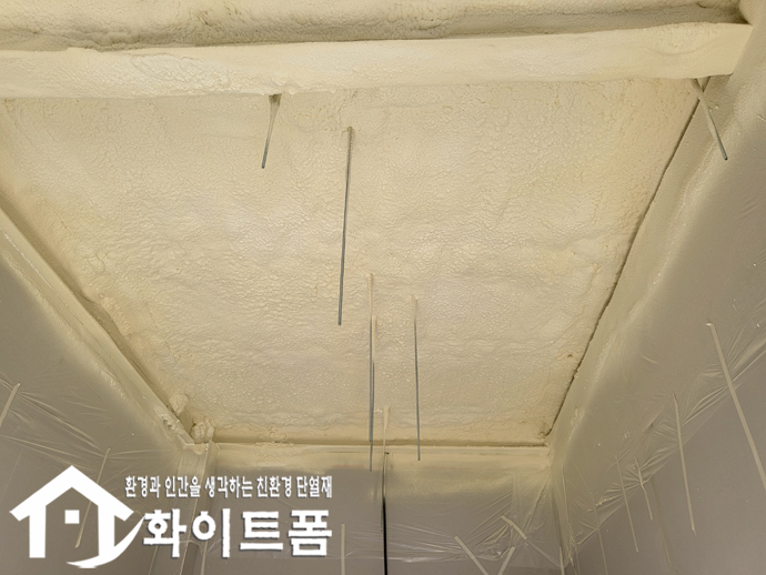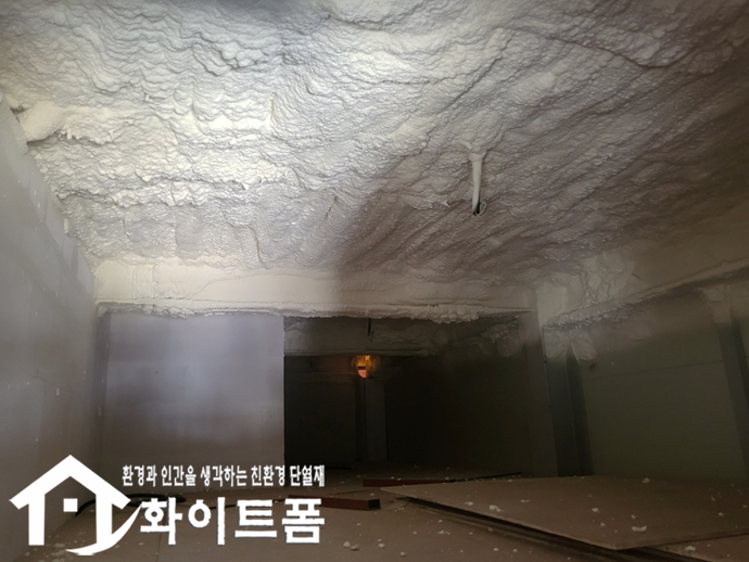 (주)신지이텍의 친환경 단열재 화이트폼(수성연질폼)은 스프레이 발포 형식으로 뿌리며 시공하기 때문에 천장이나 벽면은 물론 구석진 작은 틈새나 배관, 관통 부위 등 시공하기 까다로운 부분까지 정밀하게 단열처리를 할 수 있습니다.